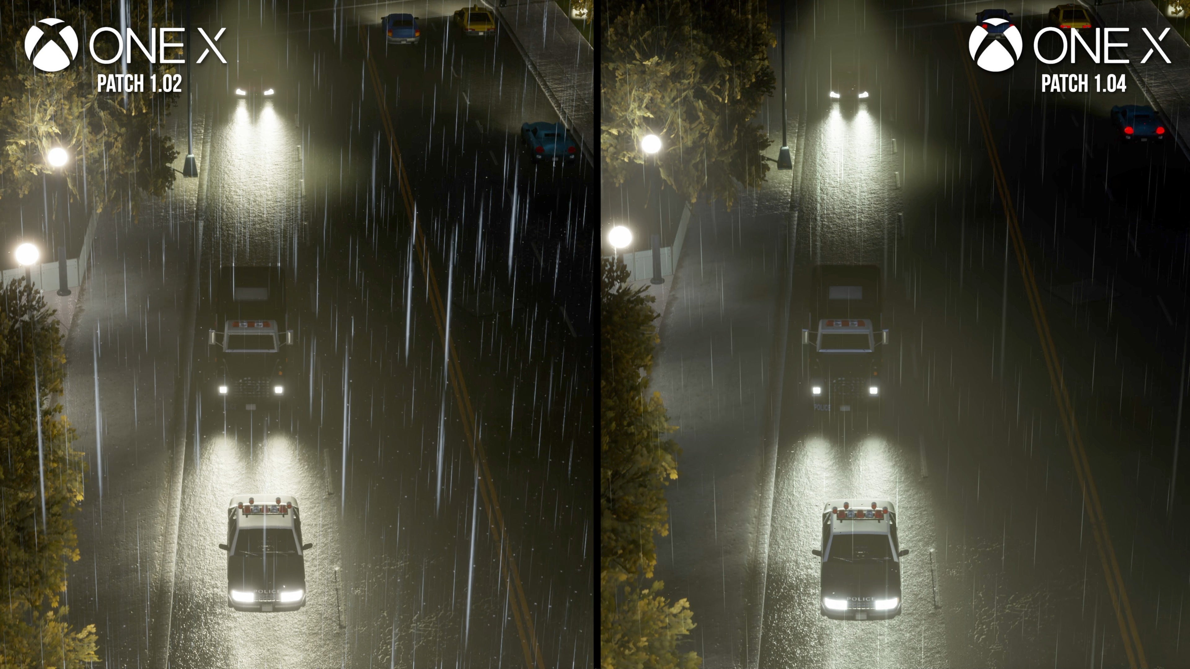 Viele der ungeheuerlichsten visuellen Effekte wurden ebenfalls angesprochen: Der Regeneffekt zum Beispiel wurde umfassend verbessert. Die ursprüngliche Freisetzung hatte sehr, schien helle Regen, die hinter Wasseroberflächen sortiert, durchdrungene Überführungen durchdrungen und sogar in den Fahrzeug-Innenräumen beobachtet werden konnten. Es war Augen mit Augenhöhlen und war manchmal schwer durchzusehen, insbesondere angesichts der relativen Dunkelheit des Spiels während der Nacht. Diese Fehler sind festgelegt und die Transparenz wird erhöht, was ein etwas realistischeres Aussehen verleiht.