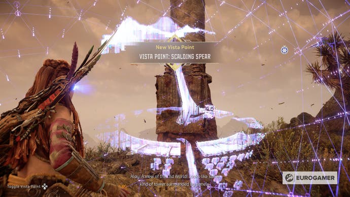 Der Vista Point befindet sich westlich des Turms auf der Sonnewing -Stelle. Es werden zwei verrostete Plattformen mit Blick auf die Verbrennung von Speer geben. Suchen Sie nach dem, der einen gebrochenen Baumstamm hat, der dazu führt, aber achten Sie auf die Sonnenwellen. Sie müssen sie bekämpfen, um Zugang zum Vista -Punkt zu erhalten.