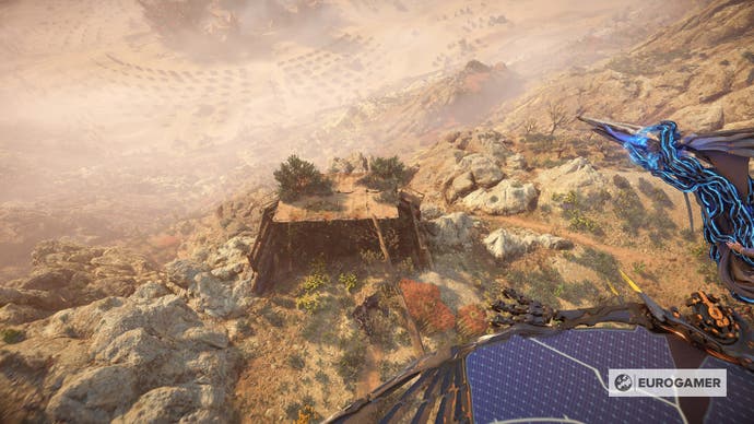 Der Vista Tower in den Stillsands befindet sich westlich von Camp Nirgendwo und nördlich von Hidden Ember in den Bergen. Es wird Maschinen geben, die den Bereich in der Nähe des Turms durchstreifen.Möglicherweise müssen Sie gegen die Burrowers, die Feuerbristelbacks und die Sonnenwellen kämpfen.