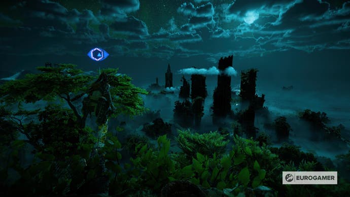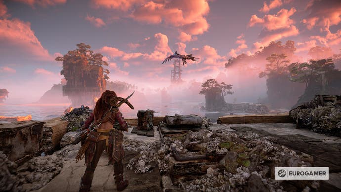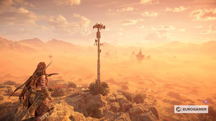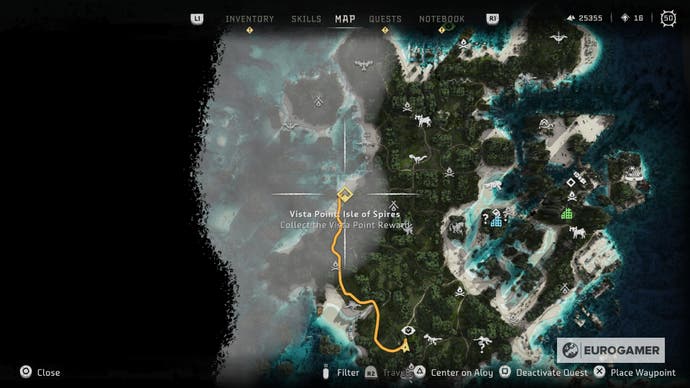 Der Vista -Turm auf der Isle of Spiers of Ofs Horizon: Forbidden West wird im südlichen Teil der Insel in den Ruinen in der Nähe eines sonnenschwingenden Ortes sein. Es wird empfohlen, dass Sie einen Sonnenaufgang haben.