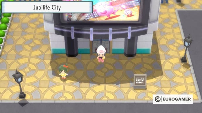 Wenn Sie mysteriöse Geschenke sammeln möchten Pokémon Brillanter Diamant und leuchtender Perle, Sie müssen zuerst die Funktion freischalten. Dies kann jederzeit im Jubilife TV Center erfolgen, nachdem Sie das erste Fitnessstudio -Abzeichen verdient haben und besiegte die beiden Galaktischen Grunzen des Teams am nördlichen Ausgang von Jubilife City.
