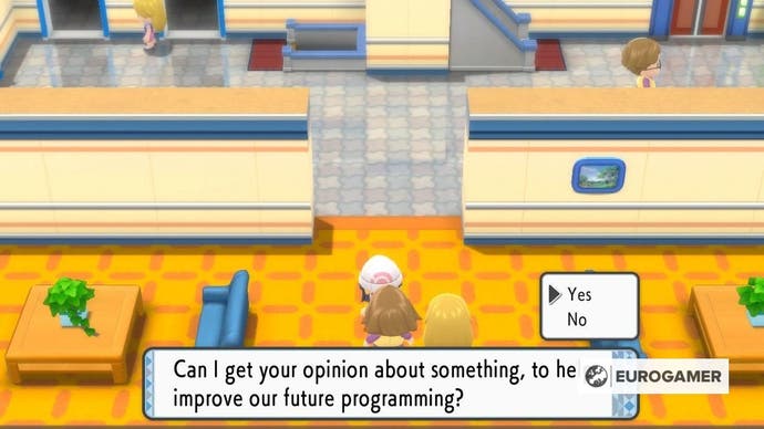 Besuchen Sie das Jubilife TV Center und nehmen Sie den Aufzug in den dritten Stock. Hier finden Sie einen Mann, der Sie, wenn Sie mit gesprochen werden, Sie fragen wird, an welcher Art von Programmierung Sie interessiert sind.