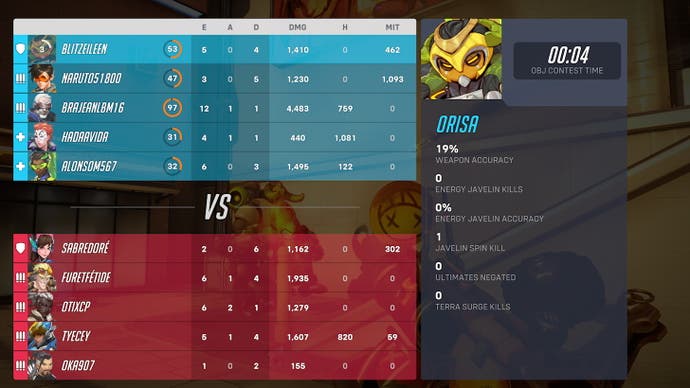 Um die Statistiken Ihres Teams zu lesen, haben wir eine Tabelle, in der jedes Anzeigetafel bedeutet Overwatch 2: