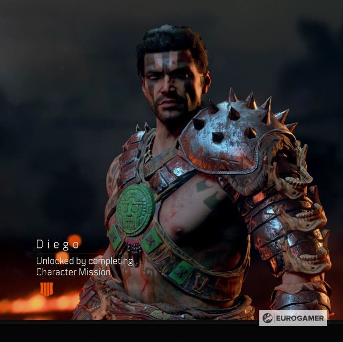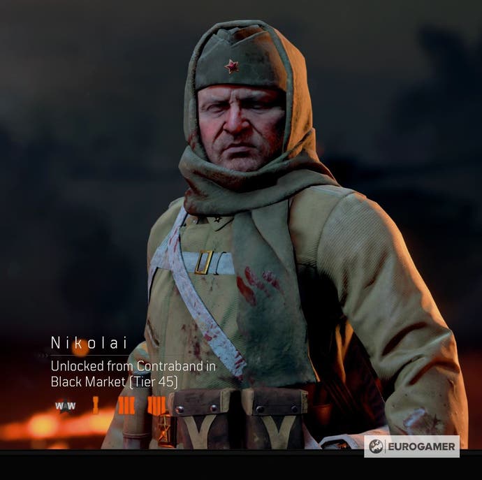 Charakter -Skins für viele bekannte Charaktere aus dem Black Ops Franchise, Zombies und Multiplayer sind von Anfang an nicht verfügbar und benötigen spezifische Maßnahmen zum Freischalten.