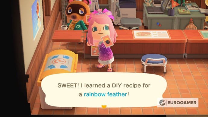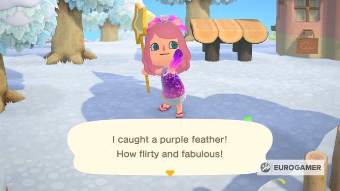Genau wie die saisonalen Materialien wie Schneeflocken und Kirschblüte Blütenblätter, Diese Federn können leicht in Ihrem Netz gefangen werden. Laufen Sie einfach um Ihre Insel und halten Sie ein Ohr für das wibbly-wobbelblaue Geräusch, das bedeutet, dass eine Feder in der Nähe ist, und wischen Sie ihn dann mit Ihrem Netz.