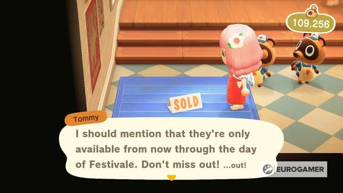 Während dieser Zeit verkauft Nooks Winkel jeden Tag einen Artikel aus dem Festivale -Set.