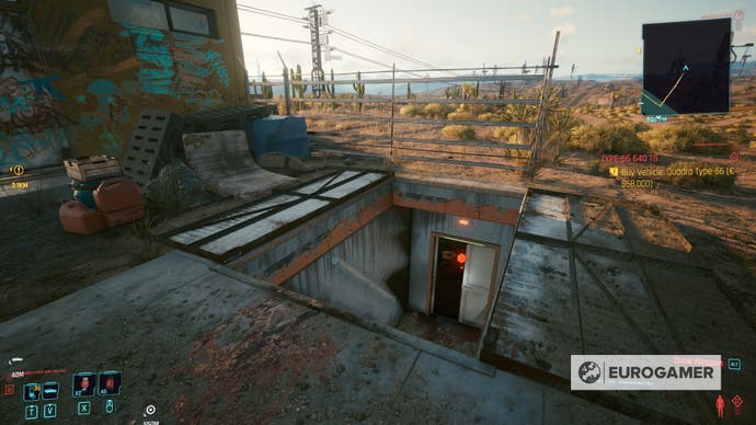Dort werden Sie ein verlassenes Haus sehen, aber direkt daneben gibt es eine geöffnete Trap -Tür, die zu einem unterirdischen Tierheim führt. Denken Sie daran, dass Sie mindestens Level 13 in Ihrem Körperstat haben müssen, um die Tür zu öffnen. Neben anderen Gegenständen können Sie die Duolayer-Nomadenjacke von Duolayer Microplate-Mesh von einem Koffer auf dem Boden abrufen.