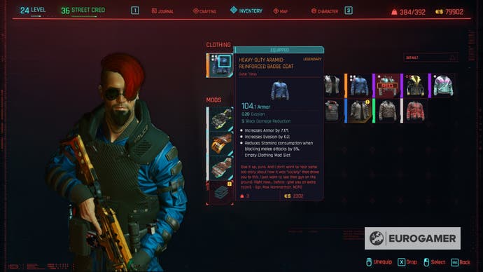 Aufrüstung von Rüstungen und Kleidung in Cyberpunk 2077 erklärt