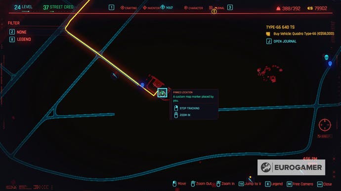Wenn Sie sich die Karte ansehen, sehen Sie ein leeres Rechteck direkt vor einem quadratischen Leerraum. Du wirst fallen und direkt unter die kaputte Brücke gehen wollen. Dort sehen Sie eine Frau kurz vor dem Laden gegen die Wand (es gibt auch einen blauen Van in der Nähe).