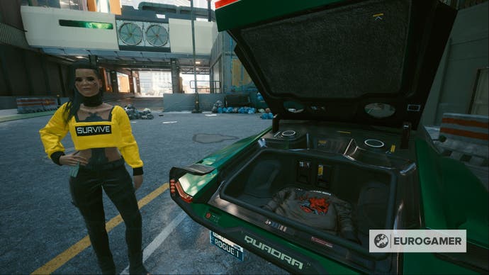 Wie kommt man: Während des zweiten Teils von Chippin ‚in (dies ist einer von Johnny SilverhandMissionen), warten Sie, bis Rogue Sie anruft und sie im Jenseits treffen und nach draußen gehen. Sie wird ein Geschenk für V erwähnen, und nachdem Sie den Lastwagen geöffnet haben, sehen Sie die glänzende Samurai -Jacke. Dies ist die Nachbildung von Johnnys Samurai -Jacke.