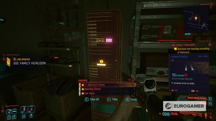 Es ist erwähnenswert. Dies ist einfacher als die ersteren. Nehmen Sie alle Feinde auf dem Parkplatz ab und gehen Sie ins Büro. In demselben Schließfach wie der Shard finden Sie Johnnys Stiefel.