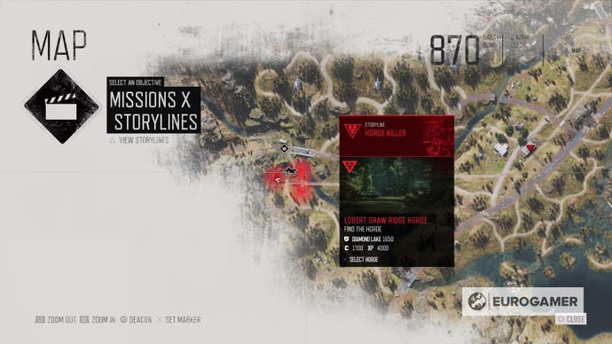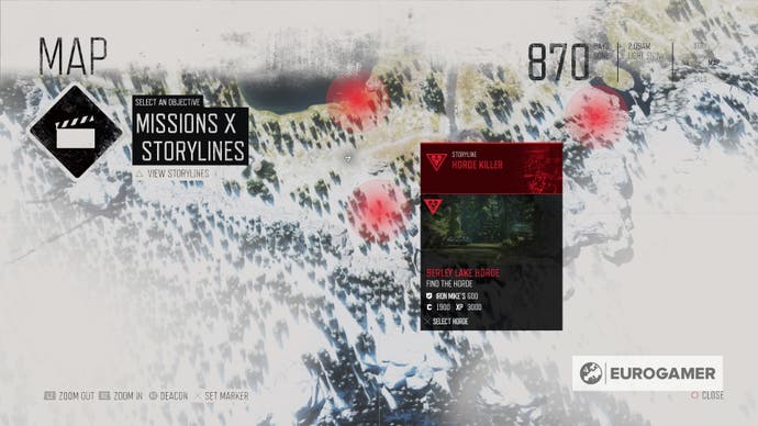 Besuchen Sie Shermans Camp (befindet sich in der Lost Lake -Region direkt westlich von Iron Mikes Farm). Die Stadt beherbergt auch eine Befallszone, die Sie während der Hauptkampagne möglicherweise geklärt haben oder nicht. Die Horde wohnt in einem Geschäft auf der Ostseite der Stadt, daher ist es am besten, die Befallszone zu räumen, bevor Sie sich ihnen stellen.