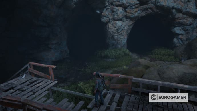 Suchen Sie das O’Leary Mountain Safehouse (es ist der gleiche Wachtturm, in dem Boozer in den ersten Stunden des Spiels bleibt) und fahren. Die O’Leary Mountain Horde lebt in einer Höhle, die durch den Basis des Berges schneidet.