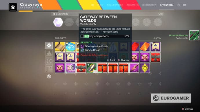 Denken Sie daran, dass das Bounty ‚Gateway zwischen Worlds‘ Kopf.