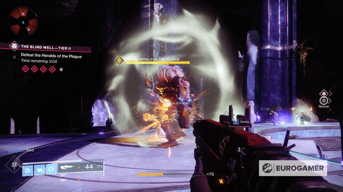 Wenn Sie bereit sind, laden Sie das Totem auf. Wie jede Runde Blind Brunnen recht einfach ist. Sie müssen in „sicheren“ Blasen stehen, die nacheinander um das Totem erscheinen und Feinde töten, die sich nähern. Nachdem eine bestimmte Anzahl von Feinden geschlagen wurde, aktiviert die nächste Blase. Gehen Sie innen und wiederholen Sie, bis die endgültige Begegnung gegen die Pest Feinde.