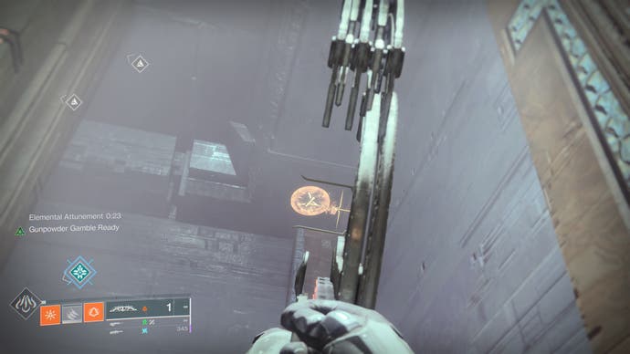 Sobald Sie diesen Such nach Elementarrunen auf versteckten im Raum sehen. Schießen Sie sie mit einer Waffe, die dem Elementtyp entspricht. Sobald Sie sie alles geschossen haben, können Sie mit dem Glyph interagieren, um Ihr Element einzustellen.