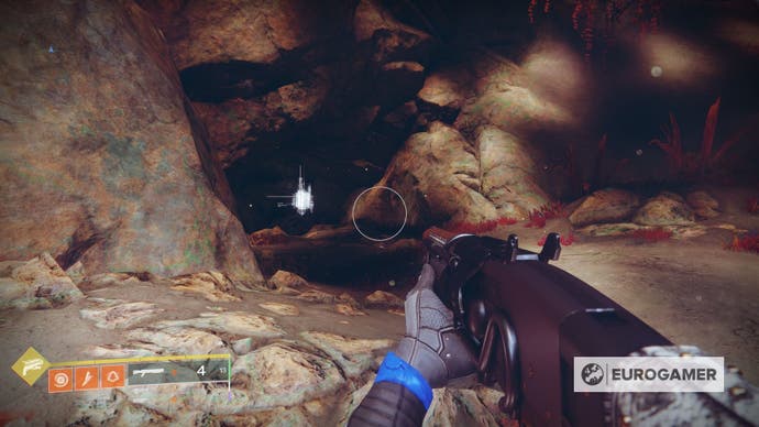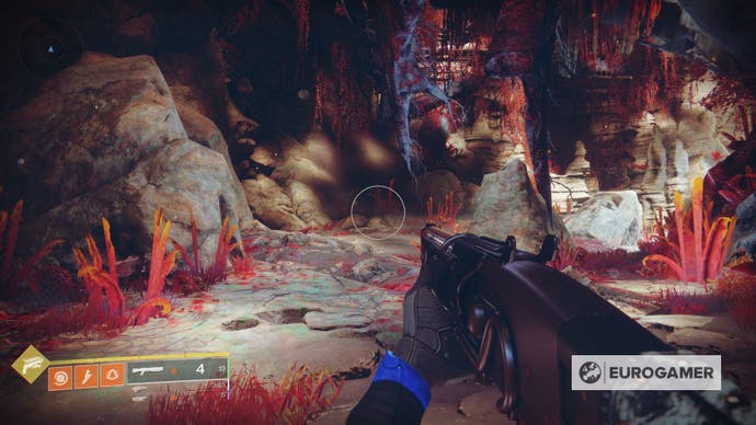 In der Höhle befindet sich ein ärgerliches Tor, bei dem Gruppen von Vex Spawn sehen werden.