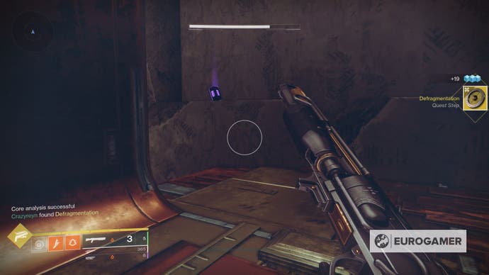 Bei diesem Defragmentierungsschritt werden 120 Entschlüsselungskernen bekommen. Dazu müssen Sie Vex auf dem Mond töten.