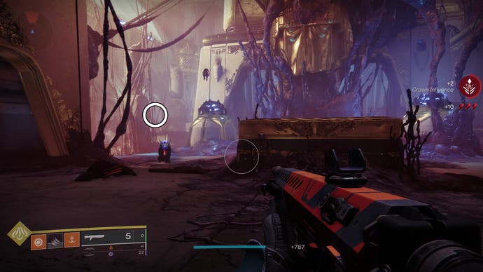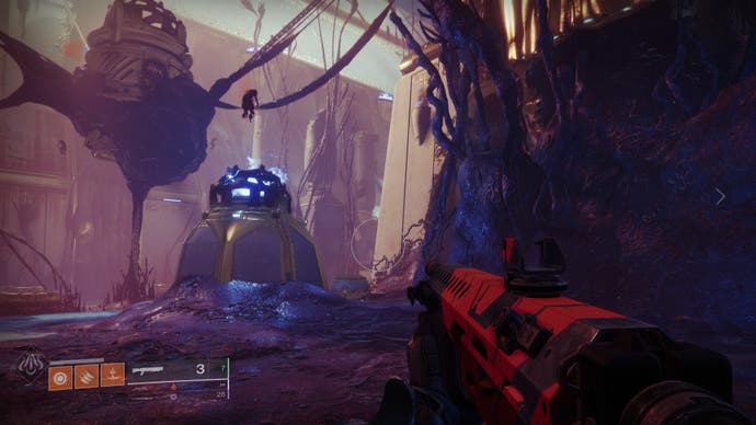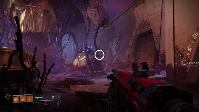 Gehen Sie die kurvenreichen Flure hinunter, bis Sie in einer großen Statue von Calus auftauchen.