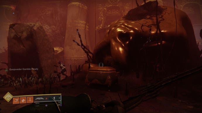 Links nach links um die große Statue steuern und auf die erhöhte Plattform springen. Die Brust ruht in der Nähe der Wand zwischen einigen der stateliesten Säulen, die Sie haben’Ich habe jemals gesehen.