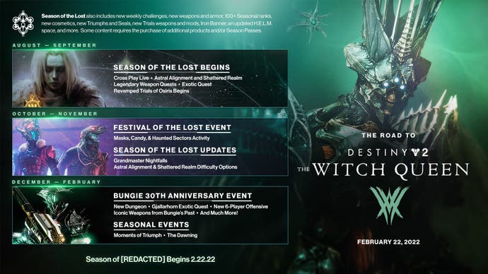 Das Gleiche geschieht hier – mit der Expansion der Hexenkönigin und der Saison der Verlorenen, die während eines Streams gleichzeitig enthüllt werden Woche) in der Stunde vor dem Debüt der Saison.