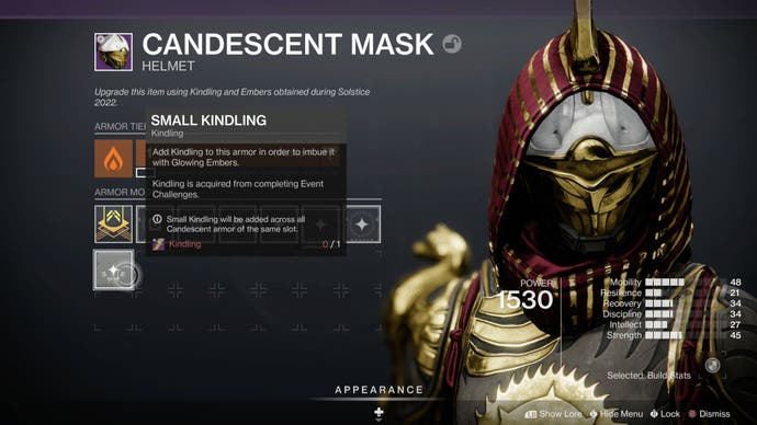 - Fügen Sie das entzündete Einzweigen hinzu, das Sie aus der Ausführung der Event -Herausforderung zu einem Stück Kandeskanze verdient haben. Wenn Sie dies tun, können Sie Silberasche ausgeben, um die Rüstung mit Glut zu verleihen, die sie verbessern.