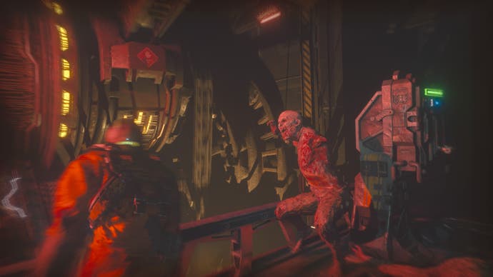 Diese oben genannte Aktion? Lieber Herr, es ist erhaben. Die Bewohner von Callisto zu zerhacken, ist mit groteske Präzision choreografiert, und jeder Schuss fühlt sich fleischig und wirkungsvoll an. Wie sein spiritueller Vorgänger möchte Callisto, dass Sie diese Dinge zerstören, anstatt sie nur zu töten, damit Sie – meistens auf die harte Tour – lernen werden, um Ihre Feinde zu verstümmen und zu zerstückeln, anstatt instinktiv für den Kopfschuss zu gehen. Interessanterweise gibt es auch ein Nahkampfsystem, wie die Kreaturen dazu neigen, sich zu stürzen und dich zu schlagen, was bedeutet.