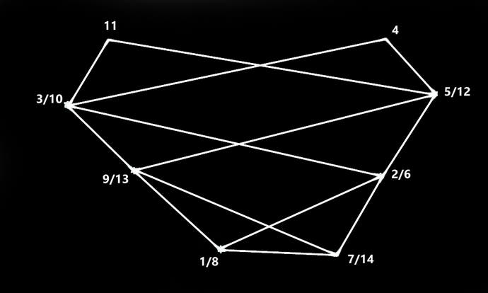 Machen Sie sich aus dem Camp von Briatath nach Westen, bis Sie eine Schotterstraße finden, die nach Westen führt. Gehen Sie die Klippen südlich hier hinauf, um einen kleinen Weg zu finden, der Sie zum Puzzle führt. Die Lösung ist unten.