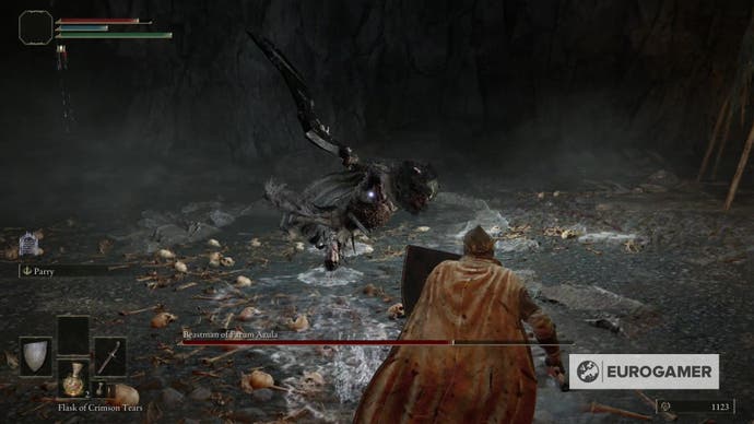 In Anbetracht dessen ist dieser Chef sehr früh in Elden Ring ist es höchst unwahrscheinlich, dass Sie ein umfangreiches Gesundheitsmesser haben, wenn Sie vor dem Beastman konfrontiert sind. Obwohl seine Angriffe relativ langsam sind, kann Ihre Gesundheit schnell auffressen, wenn Sie nicht aufpassen.