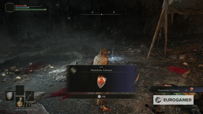 Wenn der Beastman von Farum Azula besiegt ist, werden Sie zwei Belohnungen erhalten: 1.000 Runen und ein Flamedrake Talisman für Ihre Bemühungen.