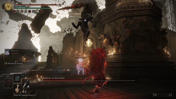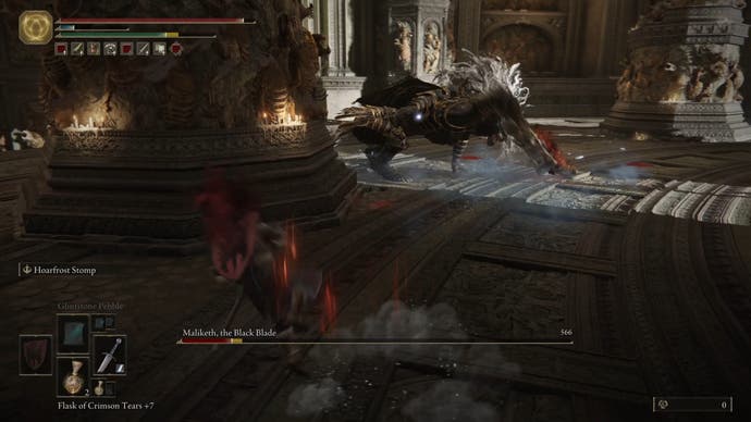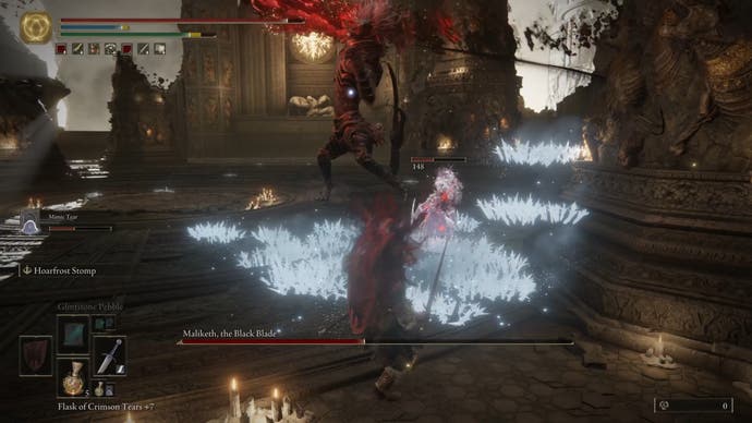 Da der Hoarzfrost -Stomp von SOFTWARE effektiv von von SOFTWARE neriert wurde, sollten Sie stattdessen eine Waffe mit Blutungsschaden aufnehmen. Der Hoarmfrost Stomp hat immer noch einen hohen Schaden, aber es dauert jetzt länger, was bedeutet, dass Sie länger gegen den imposanten Boss sitzend Ente sind. Alternativ möchten Sie vielleicht einen starken Zaubereiangriff aufnehmen – die blasphemische Klinge wirkt hier zum Beispiel einen absoluten Genuss.