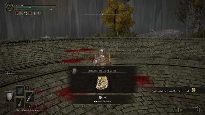 Wenn der Tiegel Ritter endlich endgültig unten ist, werden Sie mit 2.100 Runen belohnt. Sie werden auch die Fantastischen einbinden Aspekte des Schmelztiegels: Tale -Beschwörung, Dies gewährt Ihnen tatsächlich die Möglichkeit, Ihren eigenen Schwanz für einen Wischangriff vor Ihnen zu beschwören.