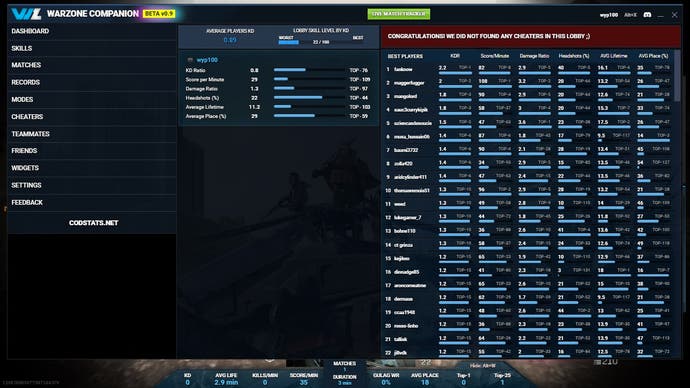 Der Entwickler eines umstrittenen Drittanbieters Call of Duty: Warzone App, mit der Sie das K/D -Verhältnis Ihrer Lobby sehen können, bevor ein Match beginnt.