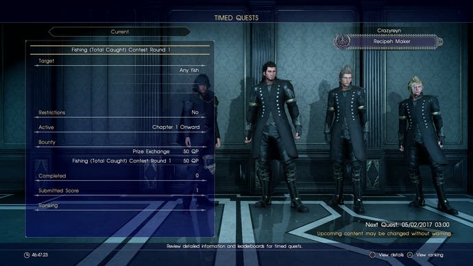 Final Fantasy 15 Timed Quests Veränderte sich im Laufe des Jahres 2017 einige Male und entwickelte sich von einem Ranking -System zu einer Reihe täglich.