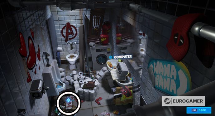Dort finden Sie ein Deadpool -Symbol über einer Entlüftung – klicken Sie darauf, um das Versteck von Deadpool zu betreten.