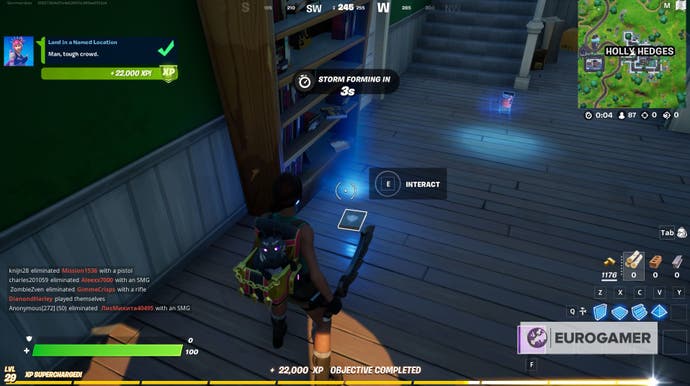 Sowohl Holly Hedges als auch Pleasant Park sind jedoch beliebte Plünderungs -Jagdorte, insbesondere zu Beginn eines Spiels. Wenn Sie also versuchen, das Spiel zu gewinnen, empfehlen wir, diese Herausforderung über mehrere Spiele zu spalten.