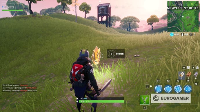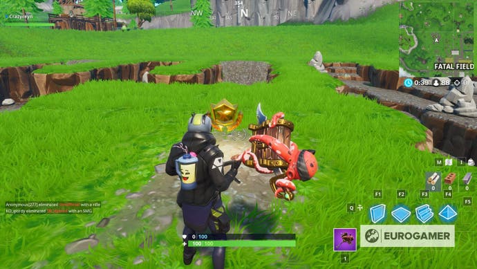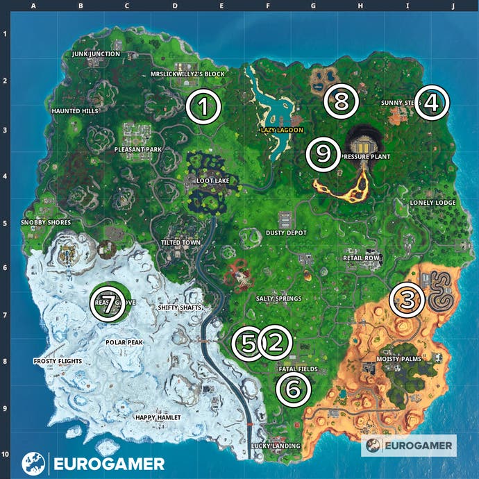 Gehen Sie zu den heißen Quellen im Nordosten der Karte, und nur im Süden befindet sich ein Turm. Der Kampfstar in der Woche 8 wird gerade dort auf einem Krater laichen.