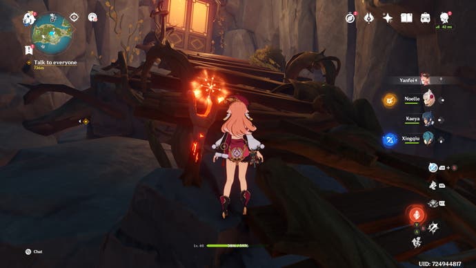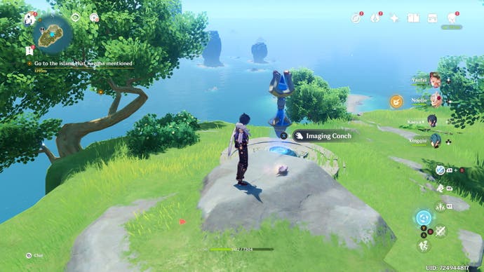Wenn Sie während der Geschichte nach der Muschel suchen, hat dies nach der Party ein Gespräch über Fischl und Drachen, nachdem sie hier transportiert wurden. In Ihrer markierten Quest werden Sie aufgefordert, das Gerät zu bedienen, um den Pfad zu reparieren „.