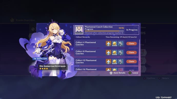 Wenn Sie phantasmale Muscheln während der Veranstaltung finden. Finden Sie genügend Muscheln um die goldenen Apfelarchipelinseln, und Sie können auch eine freischalten Neue Fischlhaut Um mit Ihrer kostenlosen Fischl zu gehen.