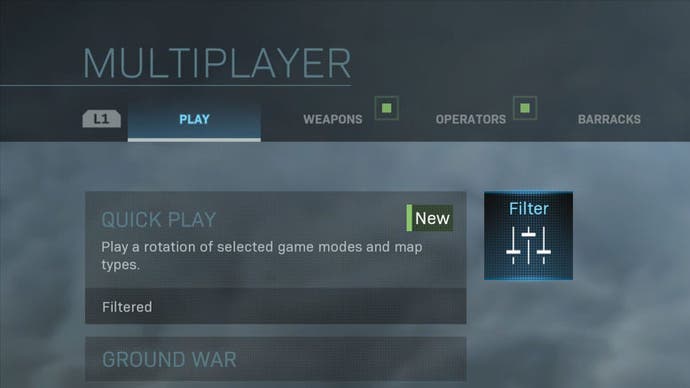 Wenn Tier 1 zum Multiplayer hinzugefügt wird, kann der Zugriff auf ihn aus dem Menü Mehrspielermodus klar sein, oder es kann den gleichen Vorgang wie im Original folgen Moderne Kriegsführung Neustart. Dies wurde durchgeführt, indem die Option „Filter“ in der Hauptmultiplayer -Lobby ausgewählt wurde.