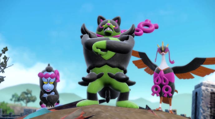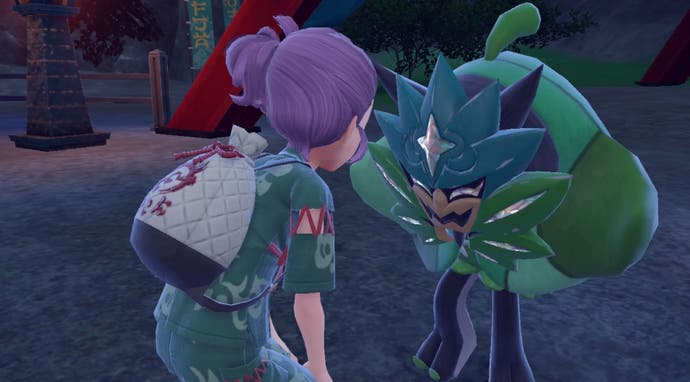 Während der blaugrünen Masken -DLC begeben Sie sich auf eine Schulreise nach Kitakami. Hier du’Ich werde beide neu finden Pokémon und solche aus früheren Generationen, die es nicht getan haben’t erscheinen ursprünglich in Pokémon Scharlach und Violett. Du’LL lernen auch eine lokale Folklore in Bezug auf eine Gruppe von Pokémon genannt Die loyalen drei.