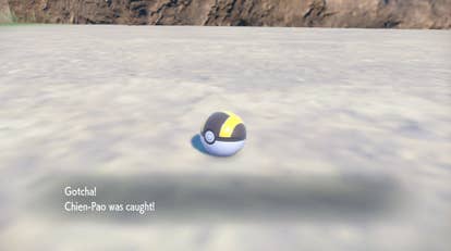 Wir haben Chien-Pao schnell in einem Ultra-Ball erwischt, aber wenn Ihr Kampf lang wächst, versuchen Sie, einen Timerball zu verwenden.Je mehr Kurven in einer Schlacht genommen werden, desto effektiver wird dieser Poké -Ball beim Fangen Pokémon.