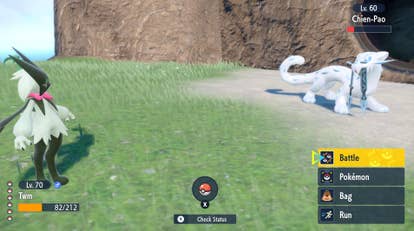 Nach dem Klopfen Chien-Pao’S Gesundheit in das Rot, es’s auch eine gute Idee, zu einem zu wechseln Pokémon, das entweder wenig Schaden durch seine Angriffe annimmt oder eine große Menge HP hat. Auch hier können Sie sich darauf konzentrieren, es zu fangen.