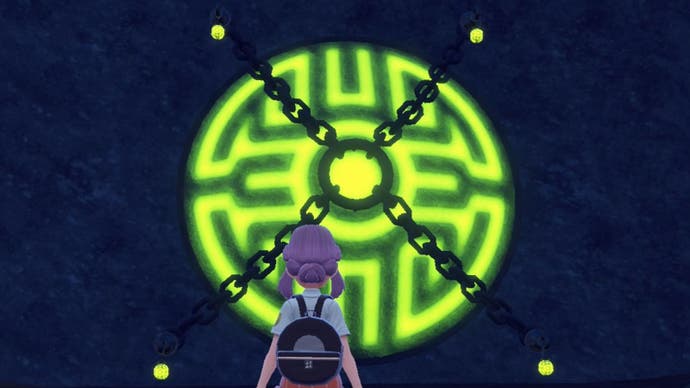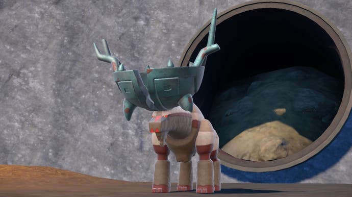 Der Wegenblattschrein Siegel Ting-lu – ein legendär Pokémon in Pokémon Scharlach und Violett – vom Rest von Paldea.
