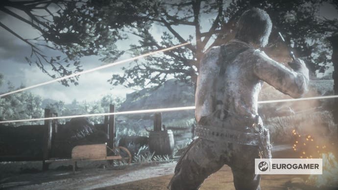 Danach müssen Sie einen Dynamit in den nahe gelegenen Gülle -Stapel aufstellen – einfach genug, einfach dem sehr kurzen Wegpunkt – und dann ist es Zeit für dieses unvermeidliche Duell.