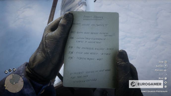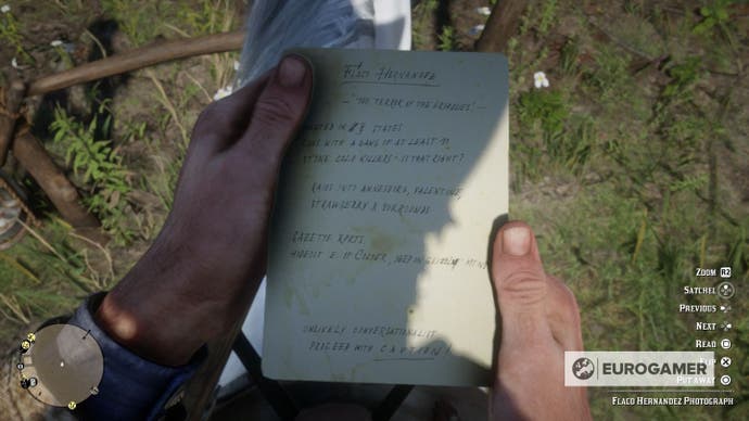 Damit ist Ihre erste Aufgabe erledigt – Sie haben alle Gusnlinger auf Ihrer Liste befragt, getötet und fotografiert -, aber die Mission ist noch nicht vorbei. Um es zu beenden, gibt es einen letzten Gunslinger, der jagt, aber es wird nur ausgelöst, sobald Sie die Mission Kapitel 4 eine schöne Nacht der Ausschweifung abgeschlossen haben.