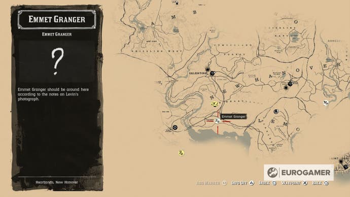 Als nächstes steht Emmet Granger, der einen langen Weg südlich und leicht westlich Ihres Standorts von Flatneck Station versteckt.