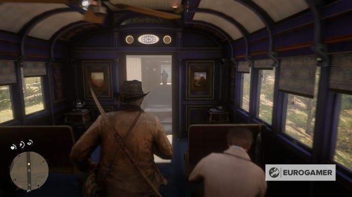 Er rennt weg, wenn Sie sich nähern – zurück, wie Sie gekommen sind – also verfolgen Sie ihn und Sie werden schließlich auf dem Dach des Zuges in der Nähe der Vorderseite nach Ihrem dritten Duell ausgehen.