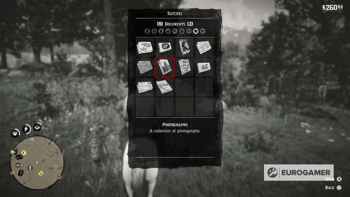 In jedem Fall müssen Sie, damit Flaco und seine Gruppe dort sein, tatsächlich sein Aussehen auf der Karte auslösen. Dazu müssen Sie sein Foto inspizieren. Gehen Sie zur Registerkarte „Dokumente“ Ihrer Satchel und wählen Sie die Fotos aus, dann Flaco und drücken Sie X/A, um das Foto zu überfließen und die Informationen auf der Rückseite zu lesen. Wenn Sie ihn umdrehen, markieren Sie seinen Standort auf Ihrer Karte, und jetzt.Ich werde am See erscheinen, wenn Sie dorthin gehen.